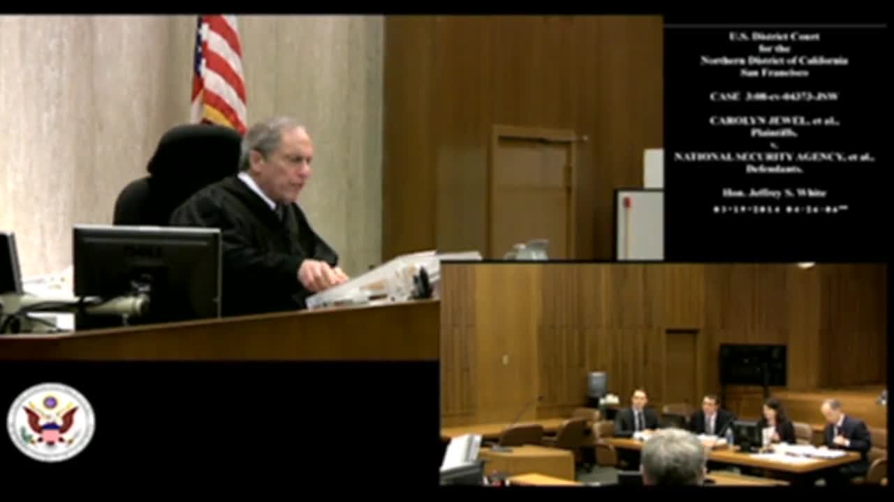 Defendants are claiming that the information necessary to litigate plaintiff's claims is subject to and excluded from use by the "states secrets privilege" and other related privileges and that their cases should be dismissed. Plaintiffs counter that Congress displaced the "states secret privilege" in electronic surveillance actions when it enacted FISA. Plaintiffs filed a motion for partial summary judgment to have the trial court rule on that issue. This video is of the hearing on that motion.