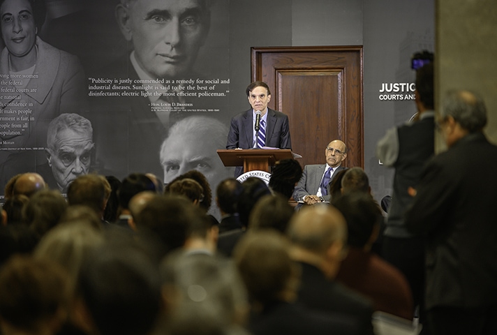 Katzmann envisioned and co-created a dynamic learning center in the Thurgood Marshall U.S. Courthouse in New York City. The flexible design is adaptable to many uses and includes a podcasting studio.