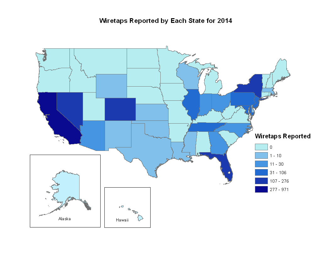 Forty-eight jurisdictions (the federal government, the District of Columbia, the Virgin Islands, Puerto Rico, and 44 states) currently have laws that authorize courts to issue orders permitting wire, oral, or electronic surveillance. Table 1 shows that a total of 26 jurisdictions reported using at least one of these types of surveillance as an investigative tool during 2014.